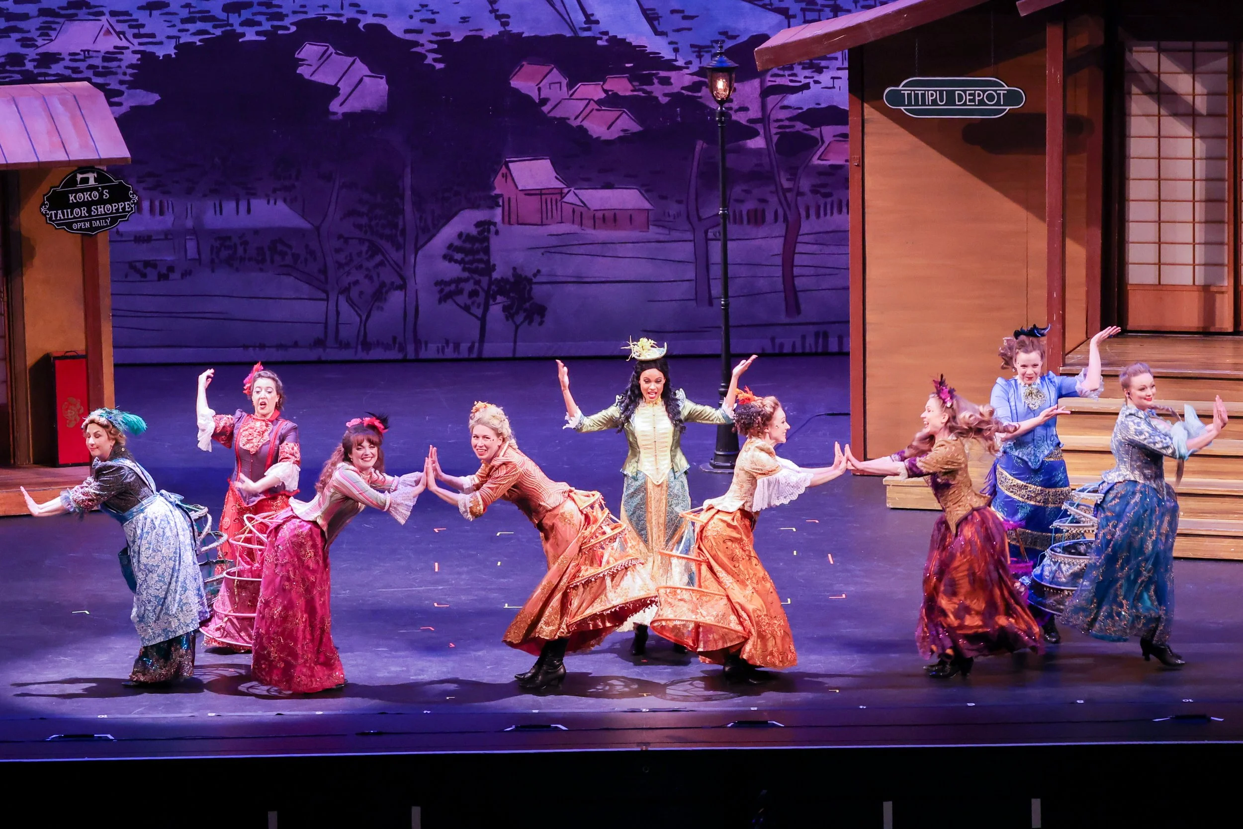 The town of Titipu welcomes its newest residents, Abby Kurth, Sabrina Lopez, and Alexandra Imbrosci-Viera, to The Mikado ensemble. Returning in their roles are David Macaluso as Sullivan and Ko-Ko, Matthew Wages as Richard D'Oyly Carte and Pooh-Bah, David Auxier as author Gilbert and Pish-Tush, John Charles McLaughlin as Nanki-Poo, and David Wannen in the title role.